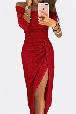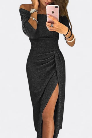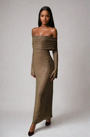 Damen Glitzer Kleid Schulterfrei Abend | Maxi