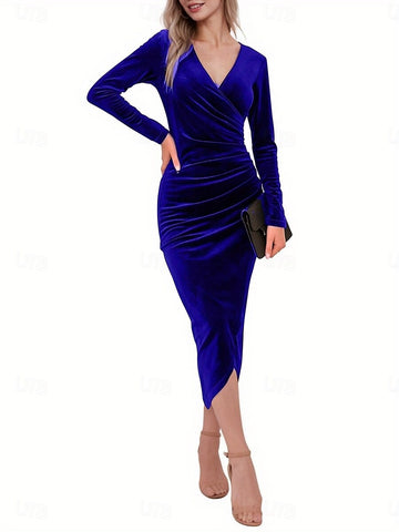 Samtkleid Damen Wickeloptik | Elegantes Midi Abendkleid