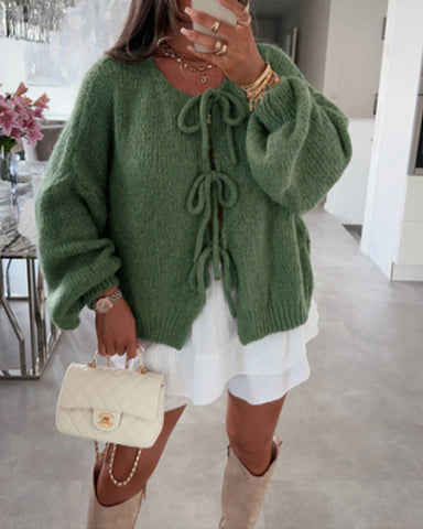 Damen Strickjacke Weich Mit Schleifenverschluss | Langarm
