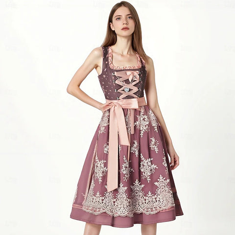 Damen Oktoberfest Dirndl Mit Stickerei Und Schnürung | Midi