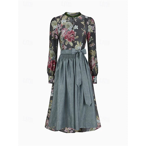Oktoberfest Dirndl Kleid Für Damen Mit Blumenmuster Und Schärpe | Festlich