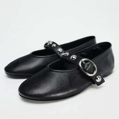 Damen Dirndl Ballerinas Mit Nietenriemen | Oktoberfest