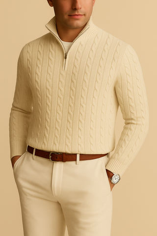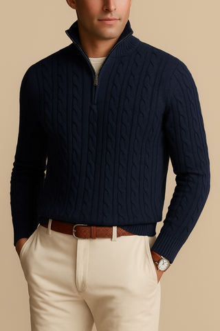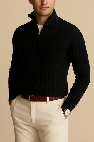 Leon - Strickpullover mit Zopfmuster und Reißverschluss, Herren Lässiger Look
