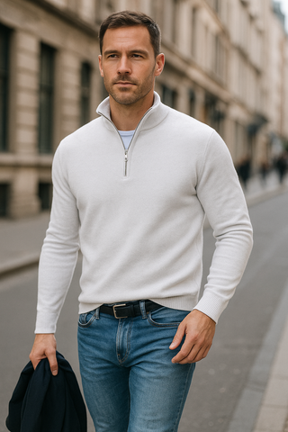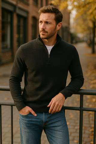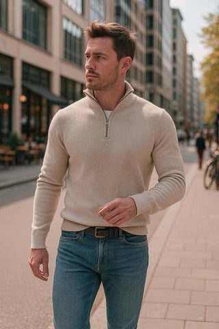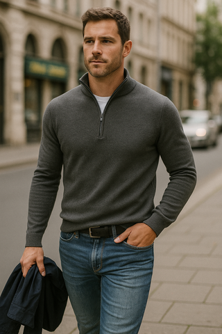 Niklas – Herrenpullover mit Reißverschlusskragen und schmaler Passform