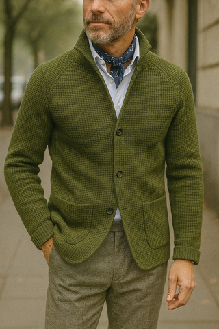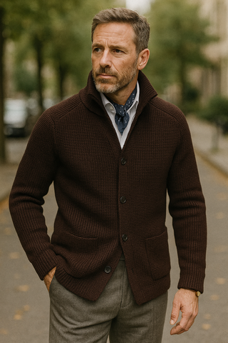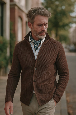 Hannes – Strickjacke mit Stehkragen und Knopfverschluss