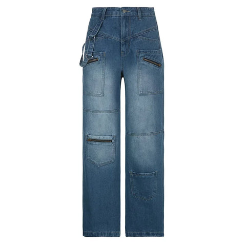 Cargo Baggy Jeans Für Damen Mit Zippern Und Taschen | Weit