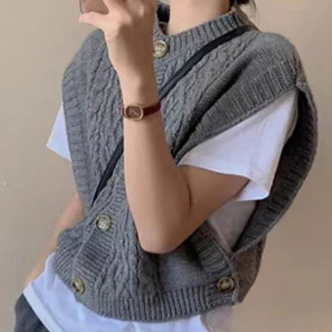 50% SPARENDamen Pullunder Mit Zopfmuster Knopfleiste | Kurz