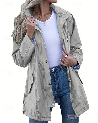 Damen Regenmantel Mit Kapuze Und Reißverschluss | Übergangsjacke