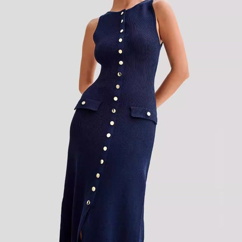Damen Strickkleid Ärmellos Mit Taschen | Maxi