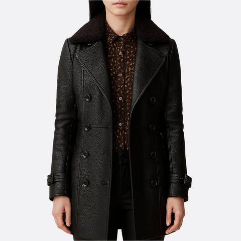 Damen Schwarzer Mantel Mit Gürtel | Zweireihig