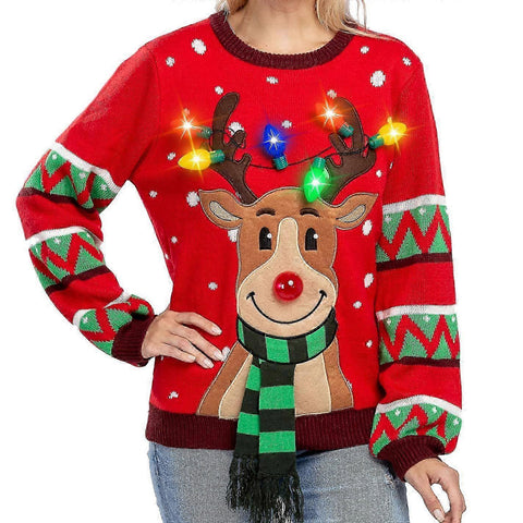 Damen Ugly Christmas Pullover Mit Rentier & Lichtern | Warmer Strick