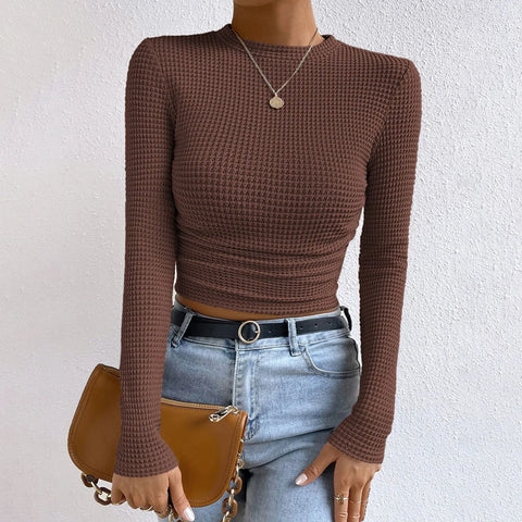 Damen Waffle Bluse | Langarm Elegantes Oberteil